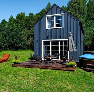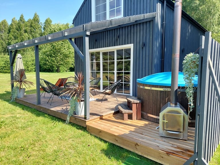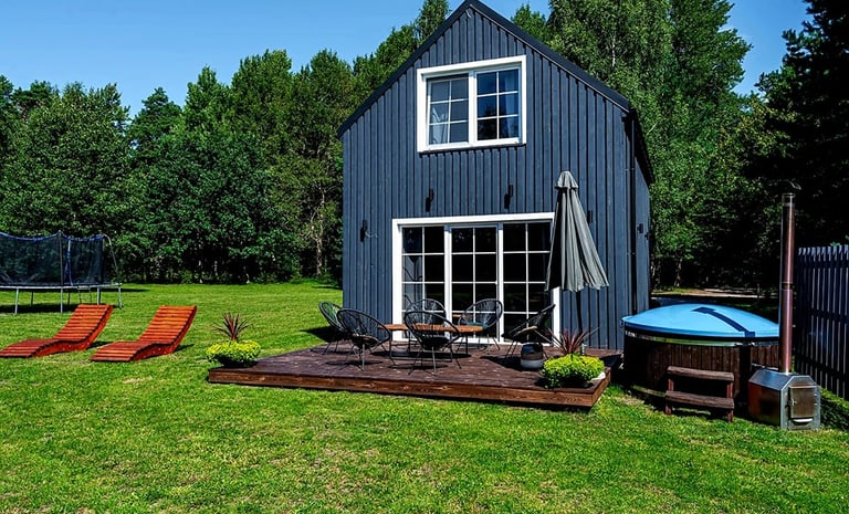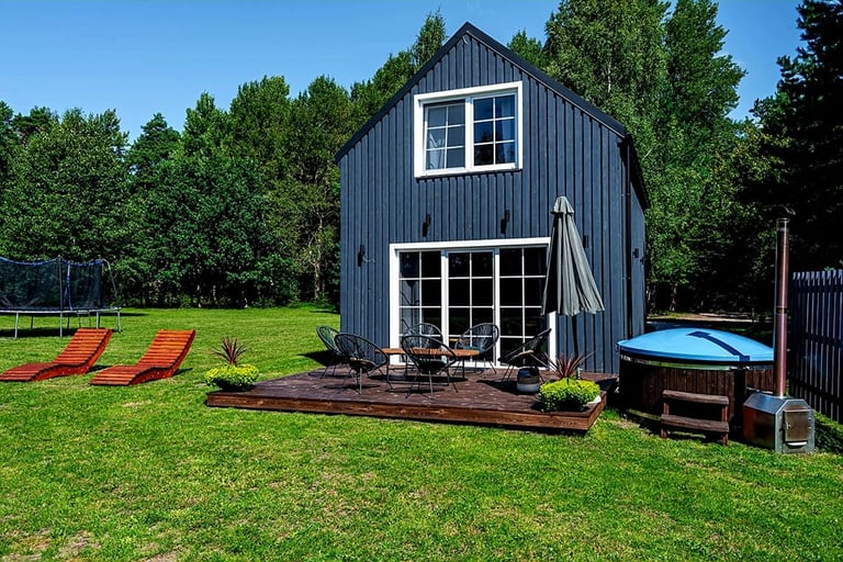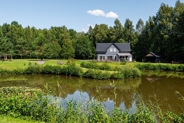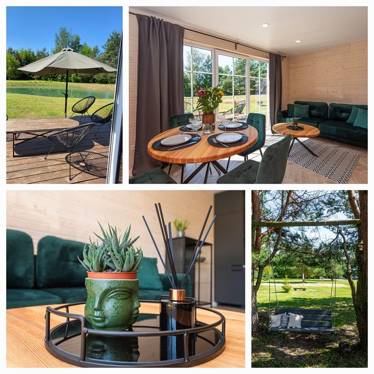 Privatus ir jaukus 85 m2 skandinaviško stiliaus namelis su privačiu tvenkiniu, sūkurine vonia kiemelyje, pavėsine, lauko supynėmis...