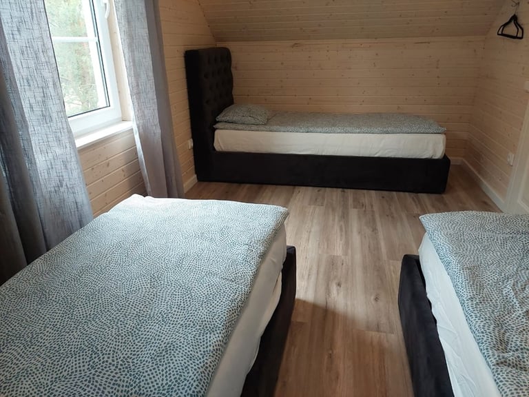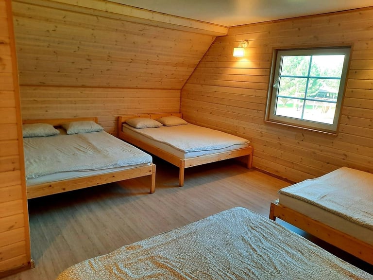 Privatus ir jaukus 85 m2 skandinaviško stiliaus namelis su privačiu tvenkiniu, sūkurine vonia kiemelyje, pavėsine, lauko supynėmis. Namelyje erdvi svetainė su virtuvėle bei reikalingiausiais įrankiais, dušas, wc. Antrajame aukšte du miegamieji kambariai. Šis namelis puikiai tiks jaukiam laikui su draugais bei artimaisiais, su nakvyne iki 6 asmenų.