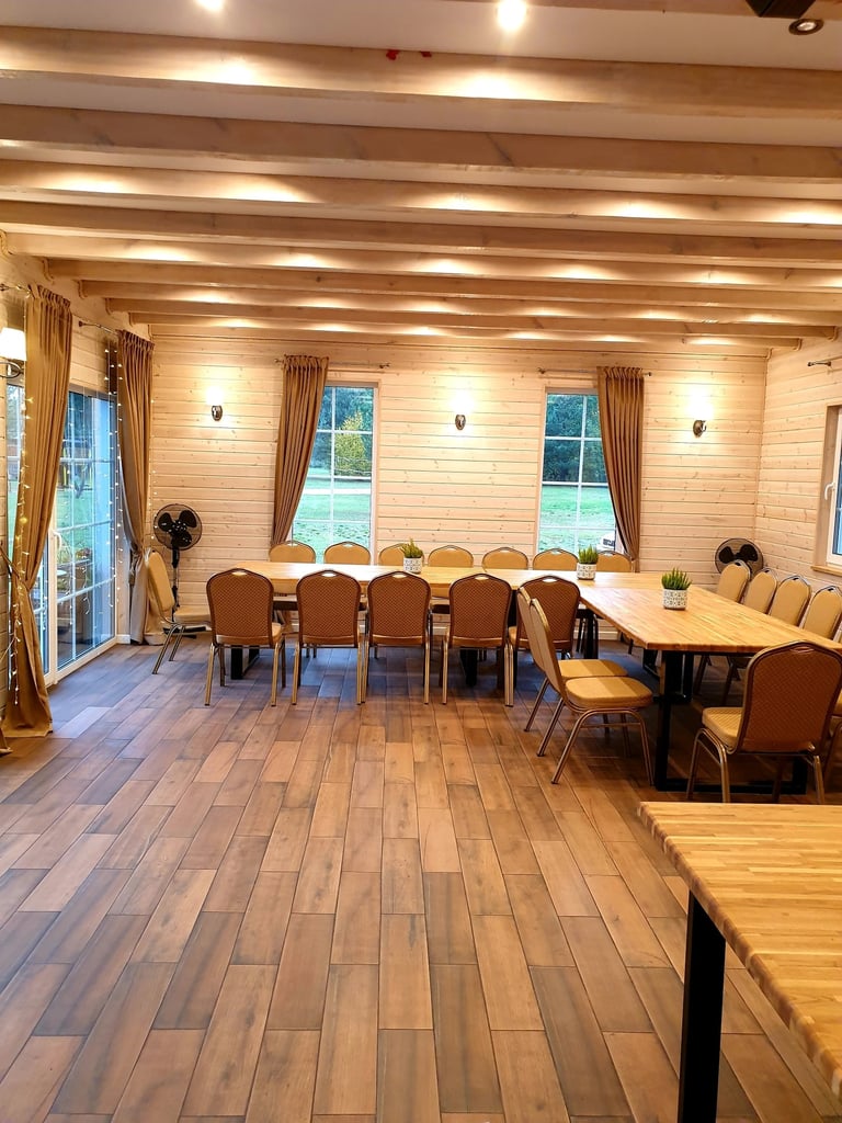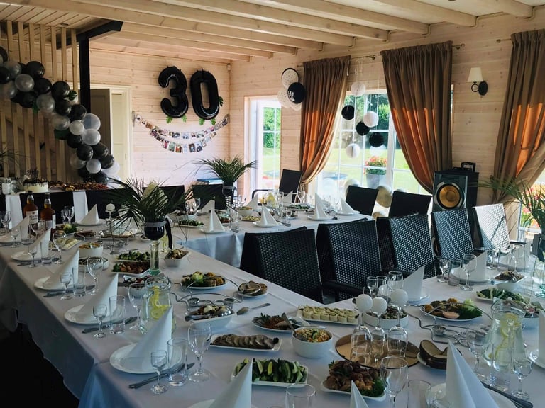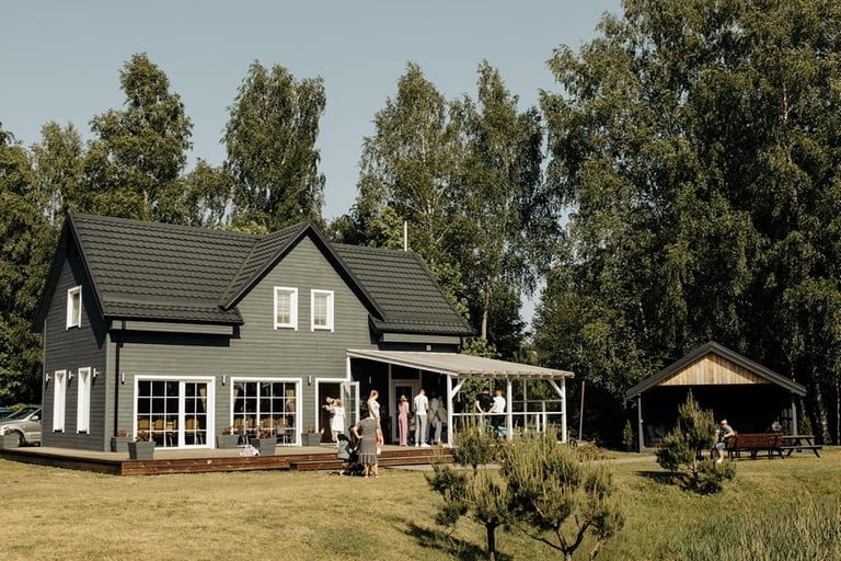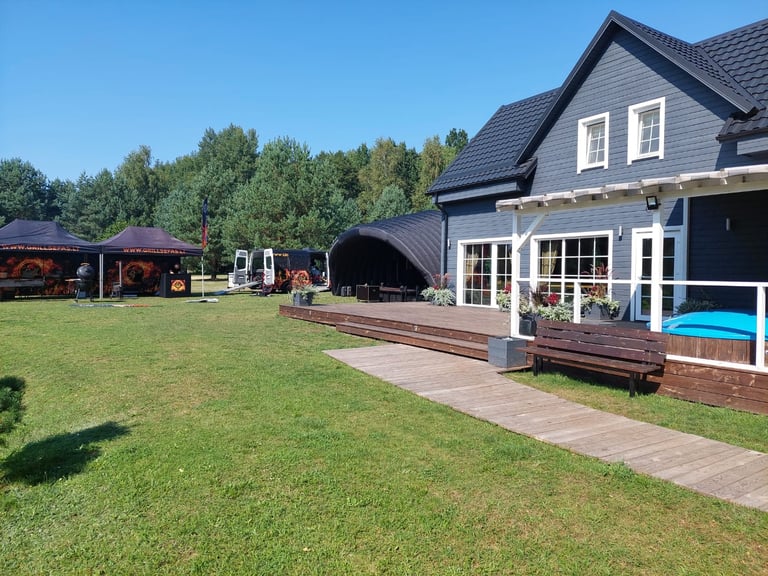 Didžioji 150 m2 sodyba su erdvia 50 m2 pobūvių sale, lauko terasa su sūkurine vonia, nuošalia pavėsine su minkštasuoliais, žuvingu tvenkiniu, erdviu ir privačiu kiemu bei žaidimų aikštele - idealiai tinkanti didesnėms kompanijoms, o švenčiantiems su nakvyne antrajame sodybos aukšte rasite 3 miegamuosius, kuriuose patogiai išsimiegos iki 20-ties asmenų.